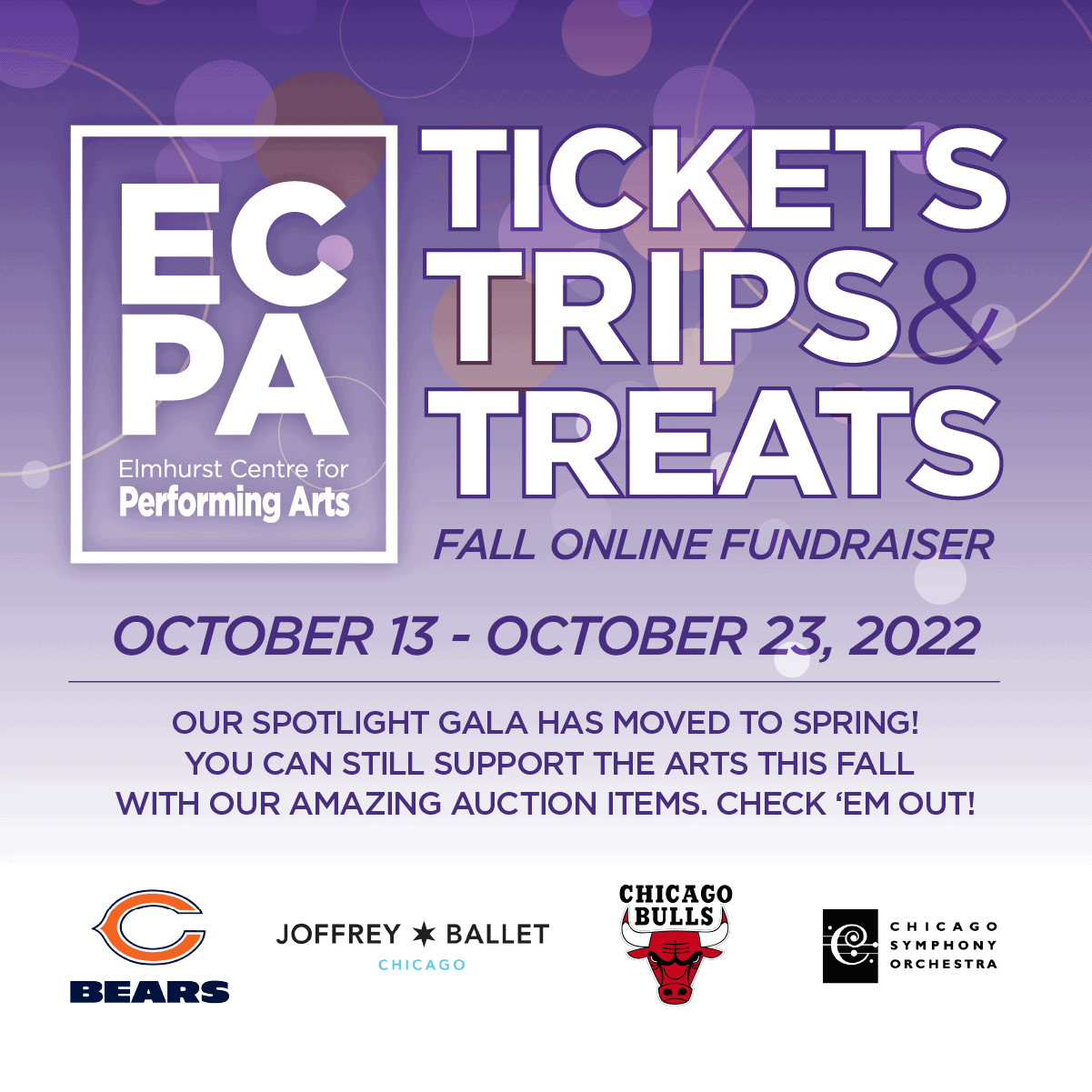 TICKETS, TRIPS, & TREATS! ECPA’S FALL ONLINE FUNDRAISER Oct 13 TICKETS, TRIPS, & TREATS! ECPA’S FALL ONLINE FUNDRAISER October 13, 2022 @ 7:00 pm - October 23, 2022 @ 9:00 pm CDT